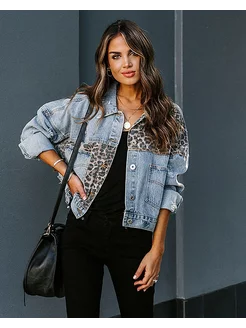 Джинсовая рубашка куртка оверсайз с леопардовым принтом