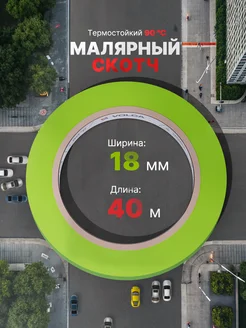 Малярный скотч 18 мм х 40 м, бумажный ЗЕЛЕНЫЙ