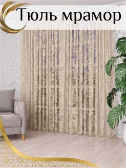 Тюль в гостиную спальню 200x280 длинный с рисунком мрамор
