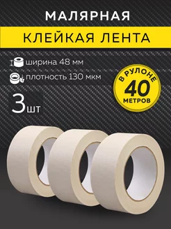 Малярная клейкая лента 48 мм 130 мкм 40 м 3 шт