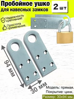 Проушина для навесного замка прямая, петли 30х94 мм, 2 шт
