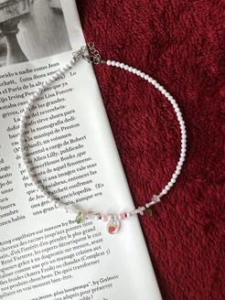 Жемчужное колье на шею с клубникой strawberry бижутерия