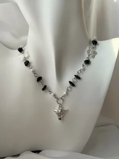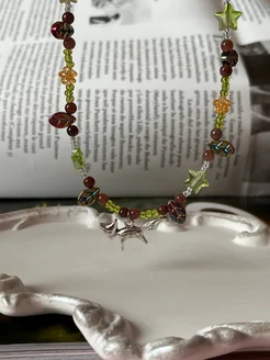 Ожерелье "Лесная тропа" с подвеской лиса, натуральные камни