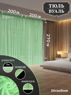 Тюль вуаль 200х270 кухонный зеленый комплект 2 шт