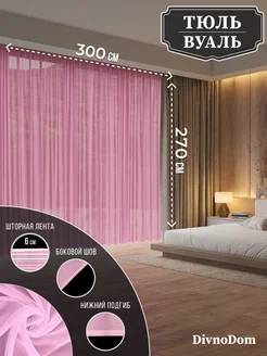 Тюль вуаль 300х270 кухонный в спальню и гостиную розовый
