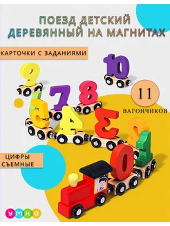 Поезд детский деревянный на магнитах с цифрами