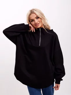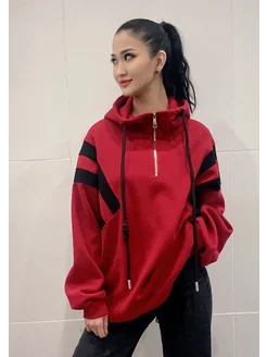 Теплая толстовка оверсайз с капюшоном удлиненная на зиму
