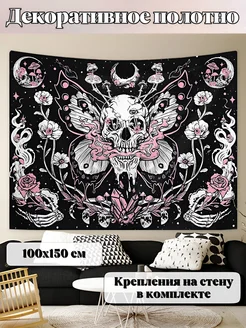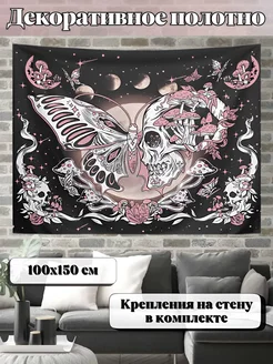 Декор Гобелен на стену Череп Бабочка Цветы 150х100 см