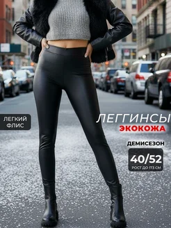 Леггинсы кожаные утепленные на флисе черные лосины экокожа