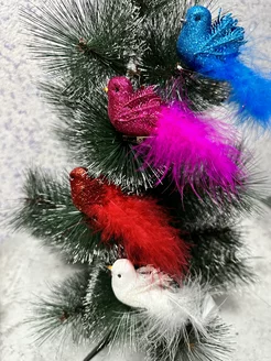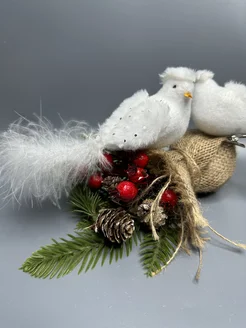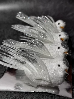 Елочная игрушка Набор Белых птичек "Хвост перо" 4 шт