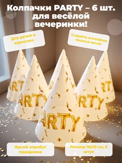Колпак на день рождения бумажный Party, (набор 6 шт)