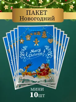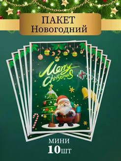 Пакеты подарочные новогодние полиэтиленовые маленькие 10 шт