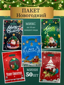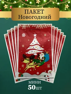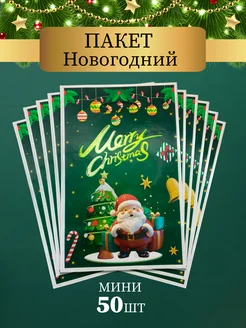 Пакеты подарочные новогодние полиэтиленовые маленькие 50 шт