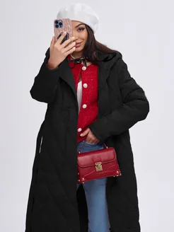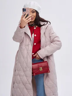 Куртка пальто весенняя стеганая с поясом и капюшоном