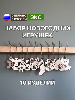 Новогодние деревянные игрушки, фигурки на елку, для декора
