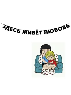 Гирлянда бумажная растяжка из букв черная - Здесь живёт