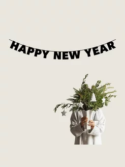 Гирлянда бумажная растяжка из букв черная - Happy new year