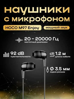 Наушники проводные HOCO M97 Enjoy, Jack 3.5mm, 1.2 м, черные