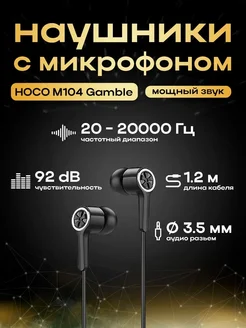 Наушники проводные HOCO M104 Gamble, Jack 3.5mm черные
