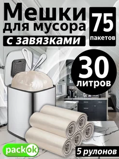 Мешки для мусора с завязками 30 литров, 5 рулонов