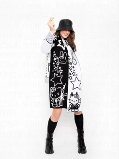 Шарф дрейн двусторонний с принтом аниме Kitty