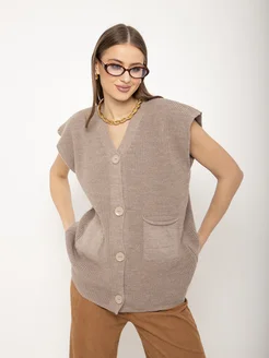Жилетка вязаная удлиненная оверсайз на пуговицах