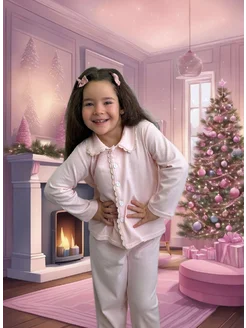 Пижама для девочки с пуговицами однотонная