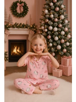 Пижама детская со штанами и рубашкой hello kitty