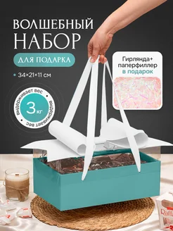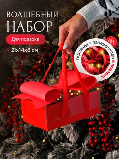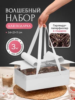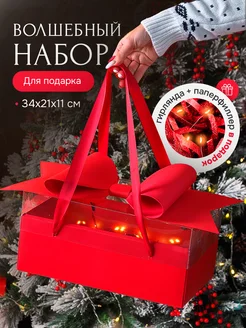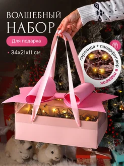 Коробка подарочная с бантом, наполнителем и гирляндой