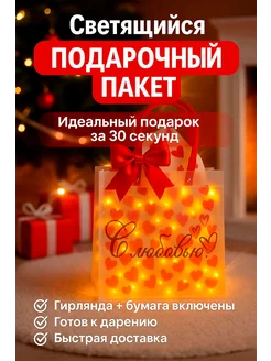 Светящийся подарочный пакет с гирляндой и наполнителем