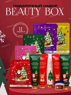 Новогодний набор тканевых масок, крема для рук, бальзам