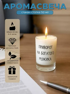 Ароматическая свеча с надписью "Приворот на богатого мужика"