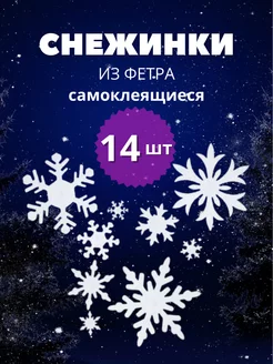 Снежинки из фетра на окно самоклеящиеся 14 шт