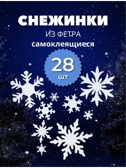 Снежинки из фетра на окно самоклеящиеся 28 шт