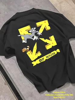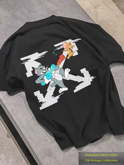 Футболка Y2k черная с принтом Off White том и джери