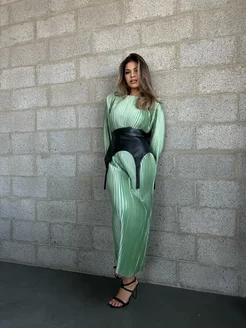 Платье с длинными рукавами атласное