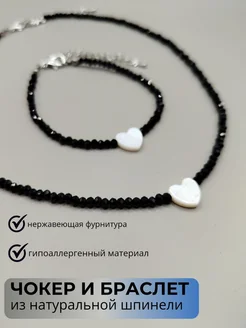 Чокер и браслет из шпинели с сердцем