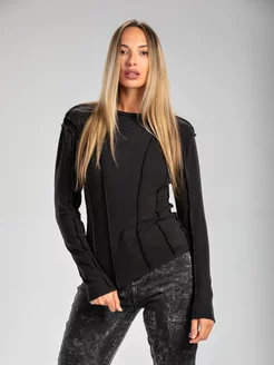 Лонгслив в рубчик с длинным рукавом офисный