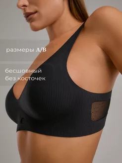 Бюстгальтер тонкий бесшовный без косточек в рубчик