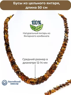 Бусы из цельного янтаря 51 см, бусины 15 на 10 мм