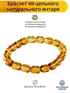 Браслет из натурального янтаря, бочонок 10 на 8 мм