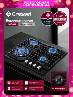 Газовая варочная панель 4 конфорки 60 см, WOK-конфорка