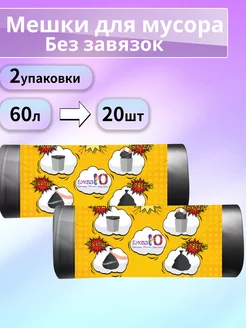 Пакеты для мусора черные 60л 20шт -2упаковки