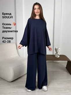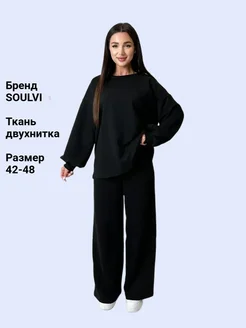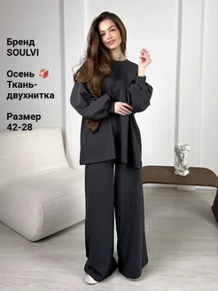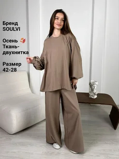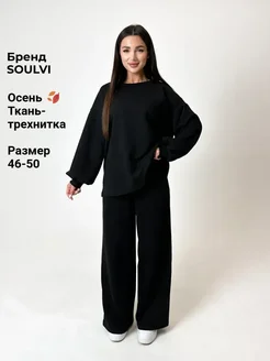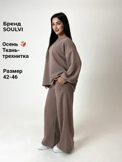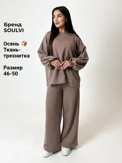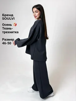 Спортивный костюм оверсайз с широкими брюками палаццо