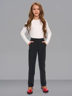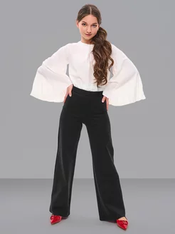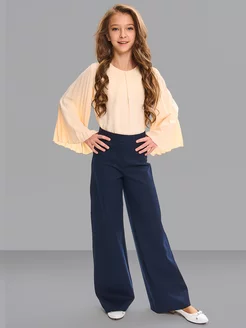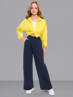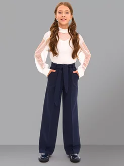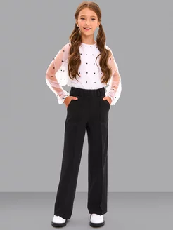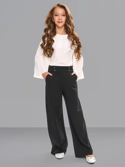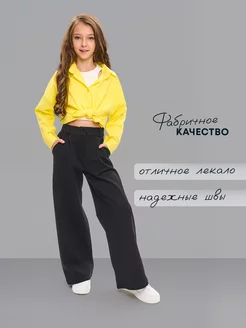 Школьные брюки палаццо на резинке трикотаж с поясом широкие