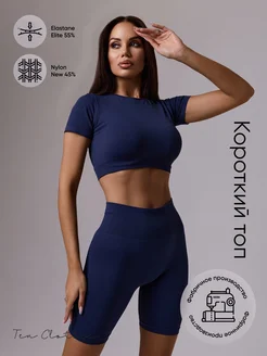 Спортивный кроп топ с коротким рукавом