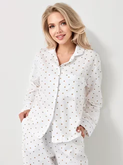 Хлопковая пижама теплая с сердечками со штанами и рубашкой