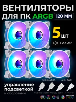Кулеры для ПК 120мм 5шт, вентилятор с подсветкой белый