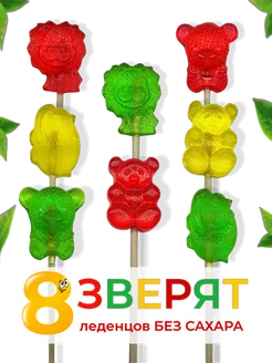 Леденцы без сахара на палочке Зверята 8шт