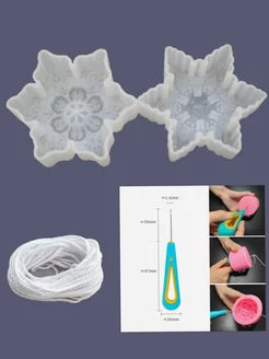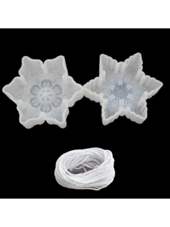 Силиконовые молды "Снежинки" и фитиль 2 метра